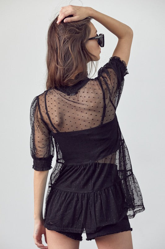 Black Lace Mesh Layering Top