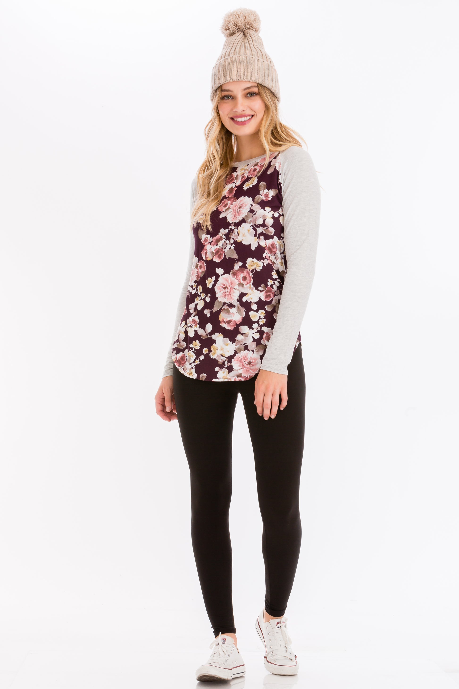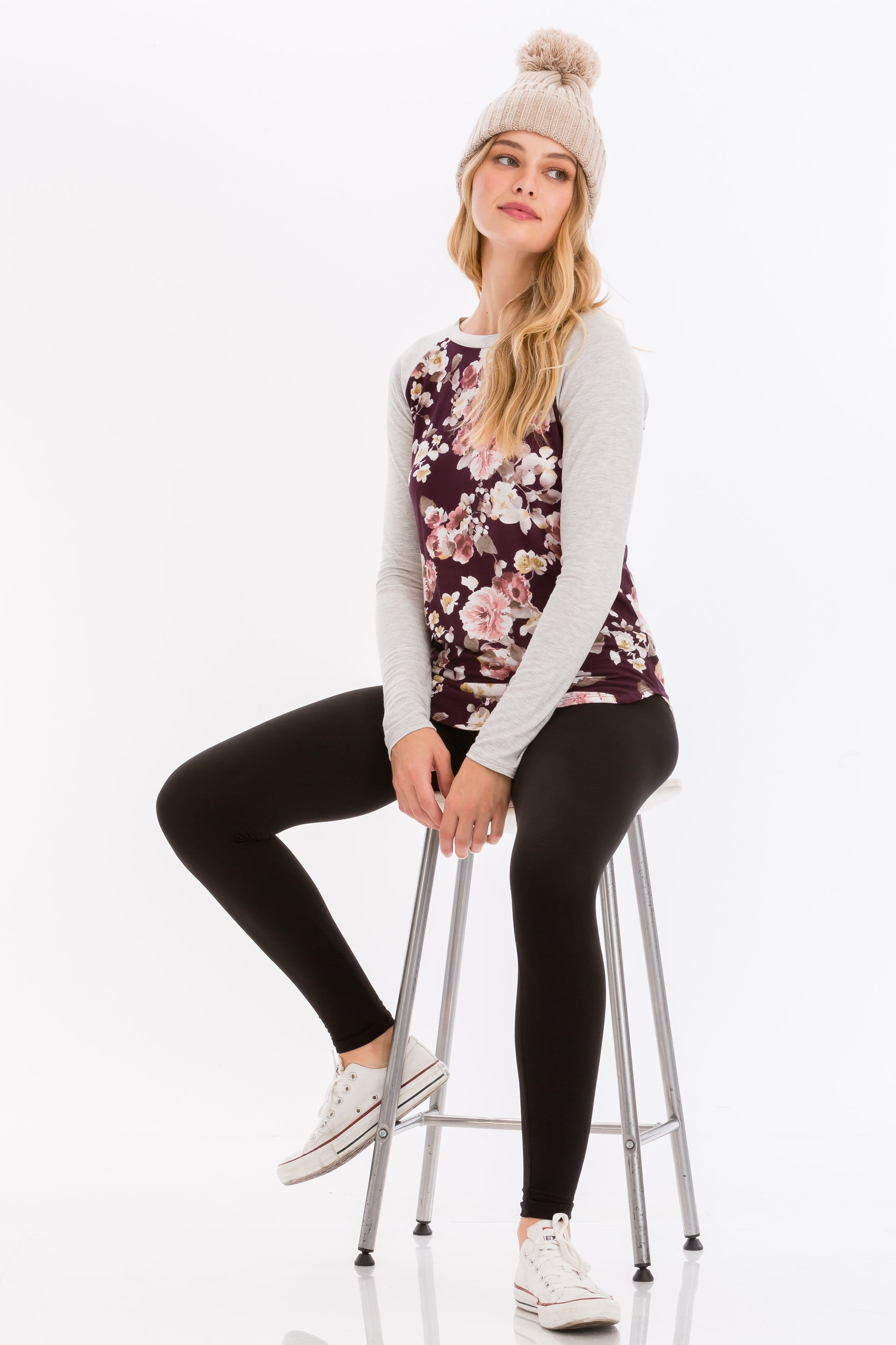 Stay stylish and comfortable with our Contrast Color Printed Raglan Long Sleeve T-Shirt. Crafted from a soft rayon span, this tee features a relaxed fit, a banded crewneck, and solid contrast raglan sleeves for a trendy look.
