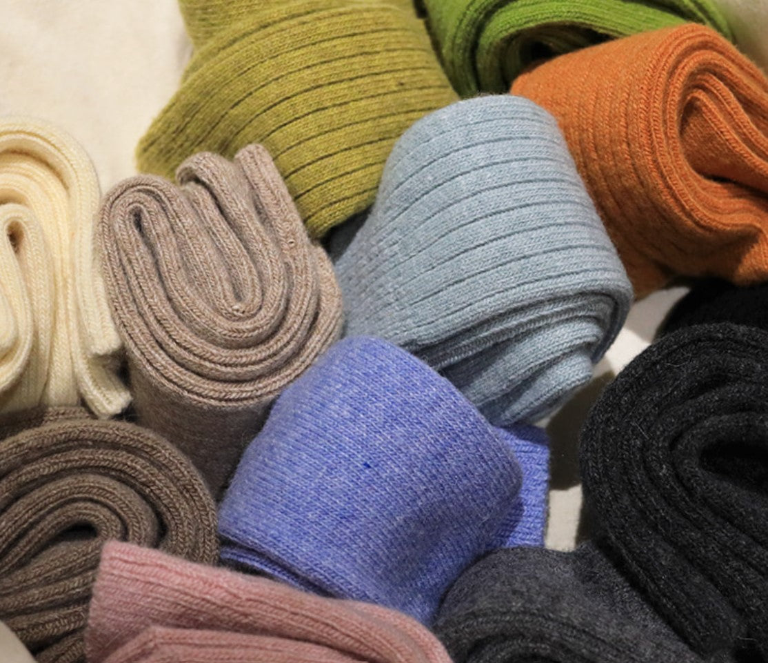 We recommend using mild soap for wool and cashmere socks. Please lay flat to dry instead of tumble drying. Air drying in the shade is the best way to keep your wool & cashmere socks in a perfect shape.